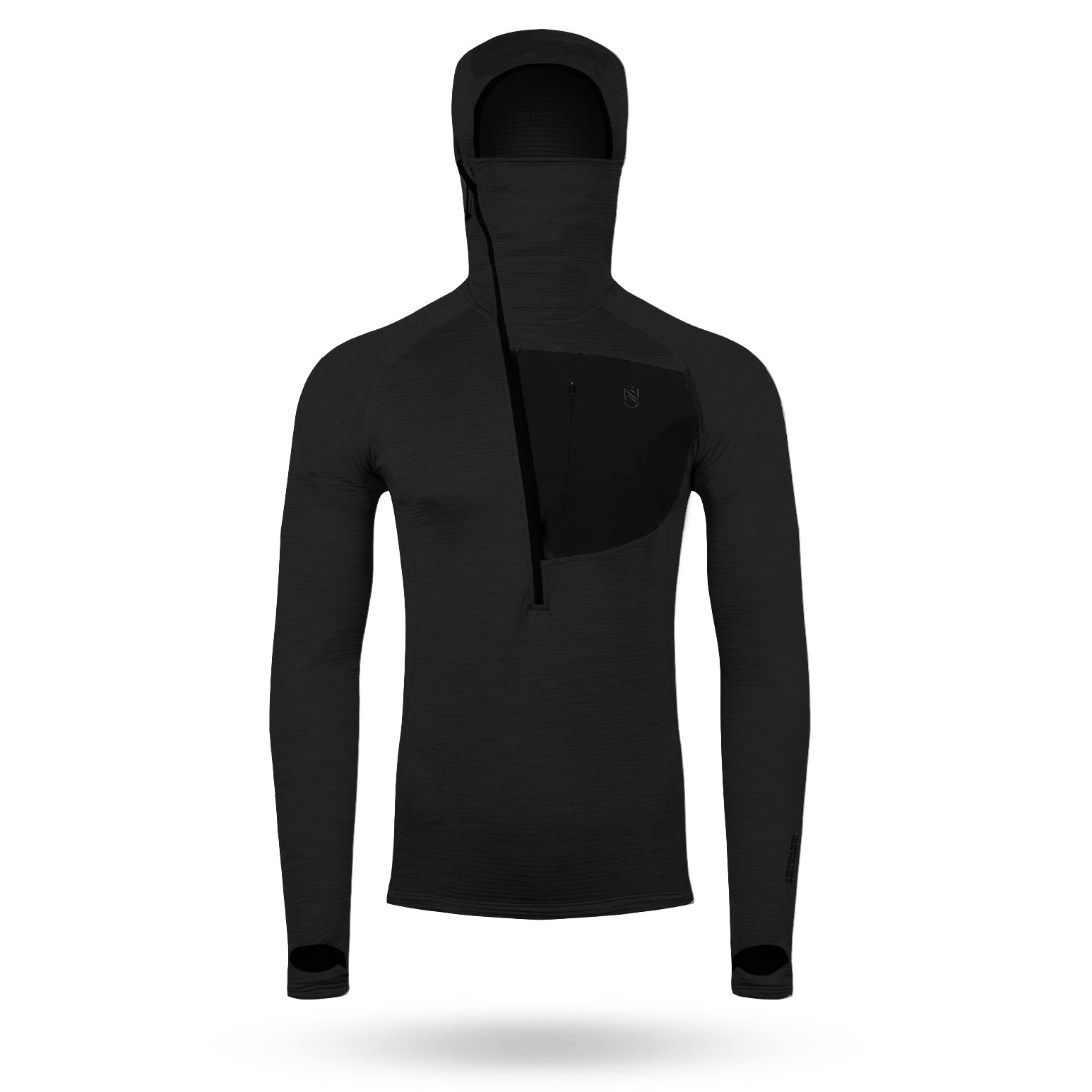 It sits close to the body to keep you warm, while the fleece has anti-microbial technology; a natural way to control odour. It is lightweight and breathable and wicks sweat away. It features a long chest zip for ventilation, thumb loops and a hood and face covering. With an extra-long back skirting, this prevents packs from chaffing against the skin. With the pocket designed in such a way, it reduces items falling out when unzipped, this versatile base layer will be with every step of the way