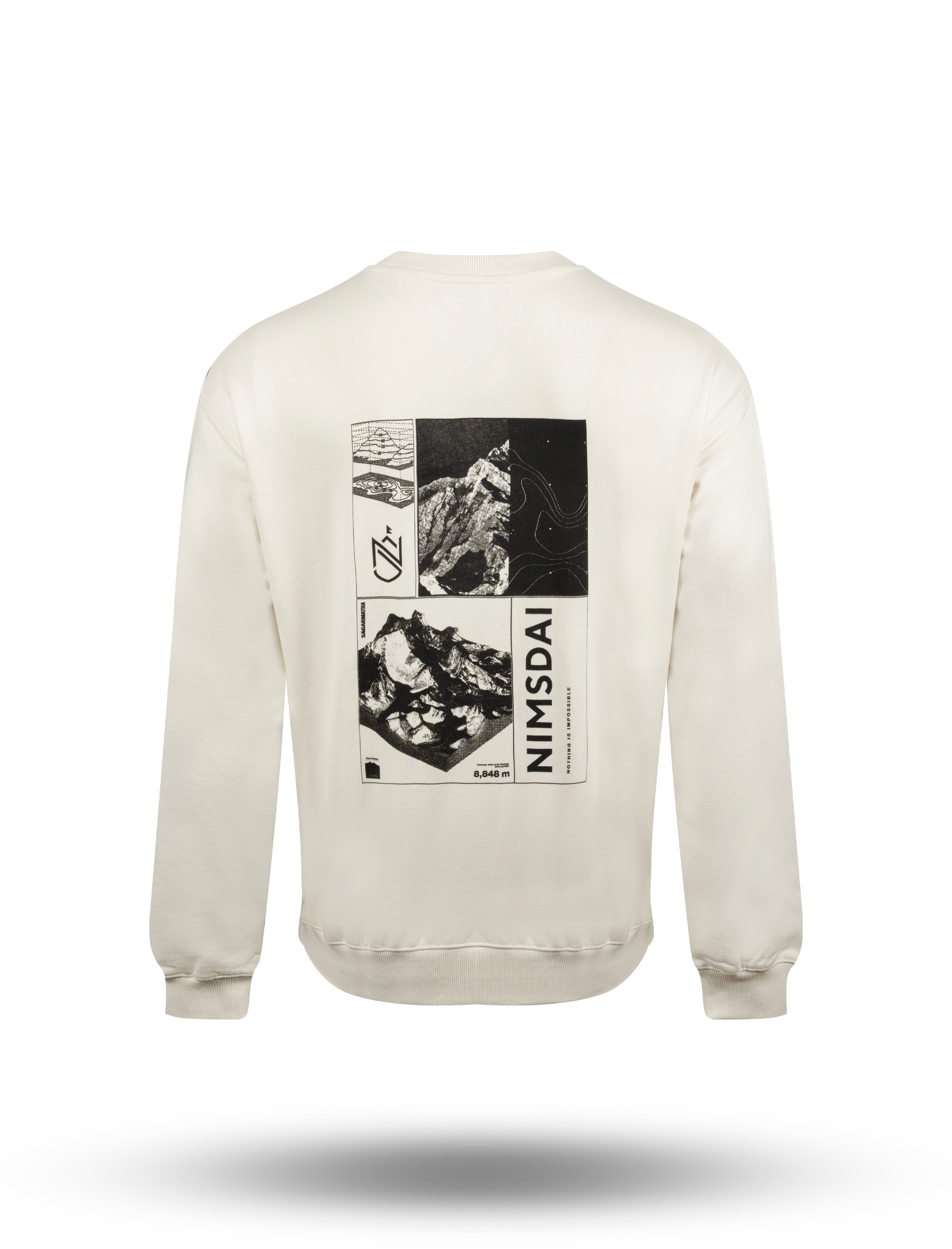 The graphic draws inspiration from the world’s highest peak, combining mountain photography, topographic lines, and technical detailing. The vertical NIMSDAI branding and altitude reference anchor the design in the brand’s mountaineering DNA where precision, resilience, and purpose define every move.