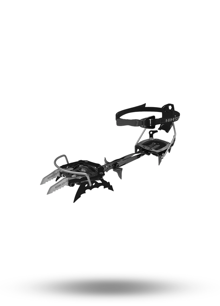 Designed, developed, and tested by Nimsdai in the most extreme environments on earth, these crampons come with two front points made from forged steel in a T-Structure, they have an easy clip-in mechanism, rather than the traditional strap at the front, that makes them easier to get on and off on the mountains. The mid-foot area is adjustable for a true fit, as are the two front crampon points – meaning these can be raised or lowered for ice climbing or walking across snow.