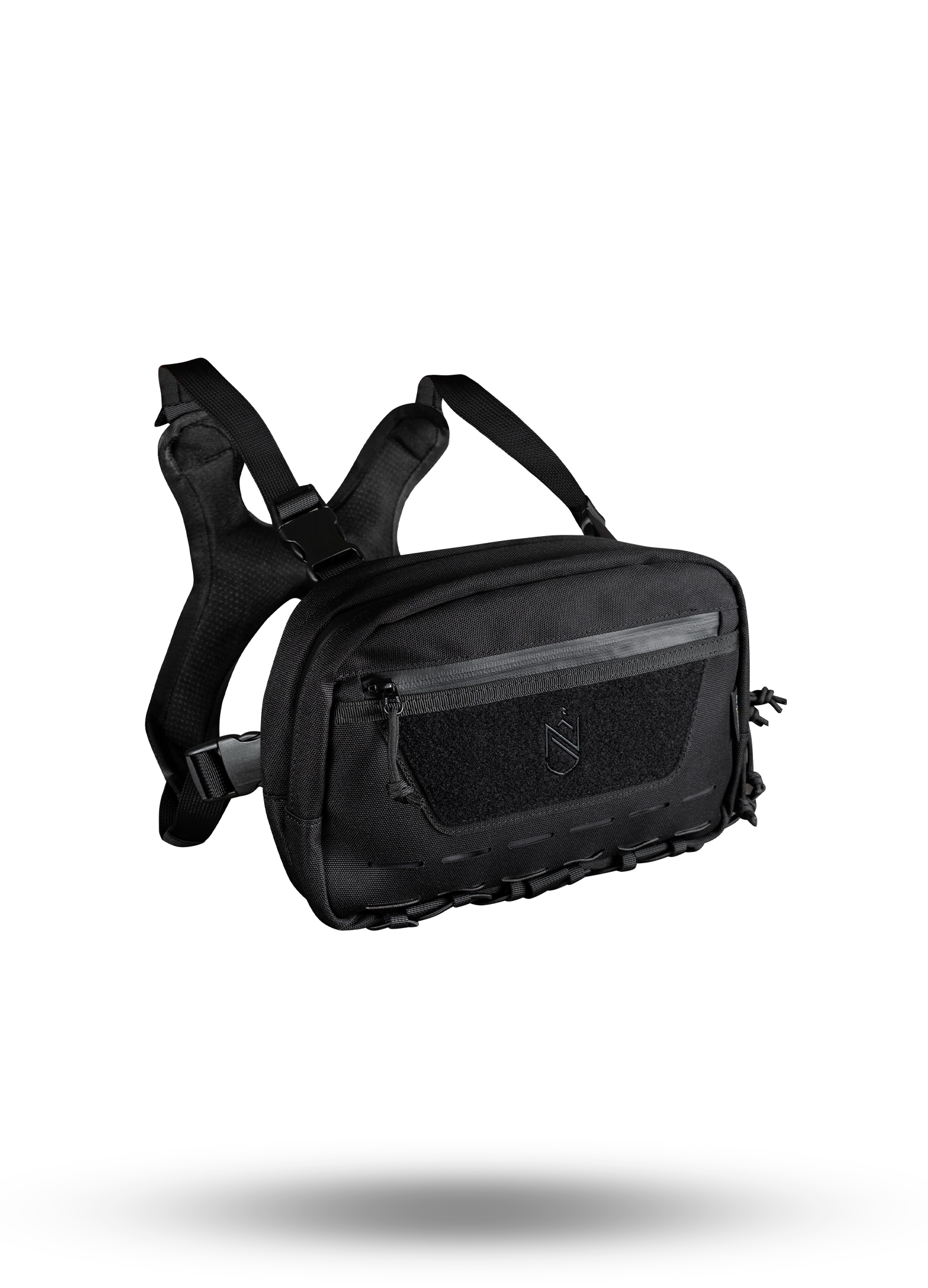 With a streamlined profile that sits comfortably across your chest, this rig keeps your essentials secure and within reach. Adjustable straps provide a tailored fit for all-day wear, while the minimalist Nimsdai branding.