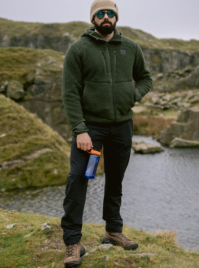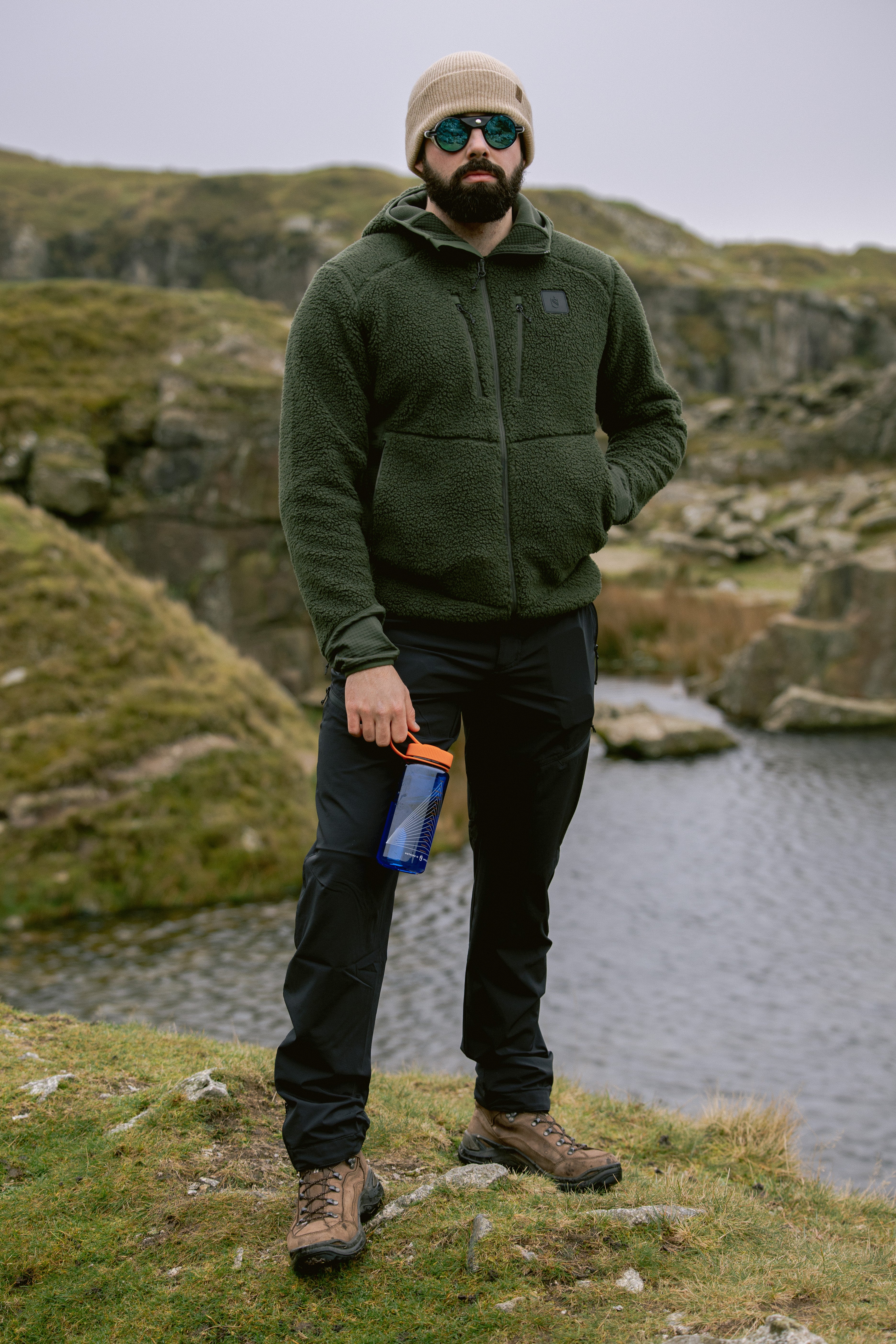 Hooded sherpa fleece jacket ideal as a mid layer or a light weight jacket in mild conditions.